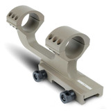 The Monstrum Tactical Offset Dual Ring Picatinny Scope Mount is built to mount standard 1 inch tube scopes to any standard Picatinny rail equipped rifle. The offset design provides an additional 2 inches of forward extension, allowing extra flexibility for optimum eye relief and shooting position. The mount is 5.75 inches in total length. The base is 3 inches long with the mounting bolts spaced 2 inches apart, a minimum of 3 inches of rail space is required to install. The height between the top of the base to the bottom of the scope rings is 1 inch, providing 1 inch of vertical clearance. The mount is constructed of lightweight 6061 aluminum, the mount weighs a mere 9 ounces.