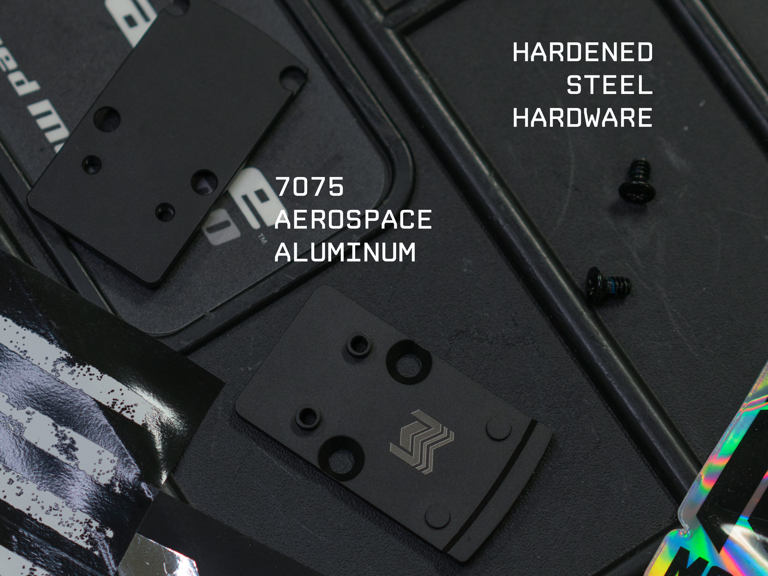 Compatible with RMSc or Holosun K series (including 407k, 507k, EPS, EPS Carry) footprint red dots only. Please refer to the compatibility chart graphic before purchasing. Includes M3 screws in multiple length for compatibility across different red dot makes and models. Recommended torque specs : 15 in/lbs.