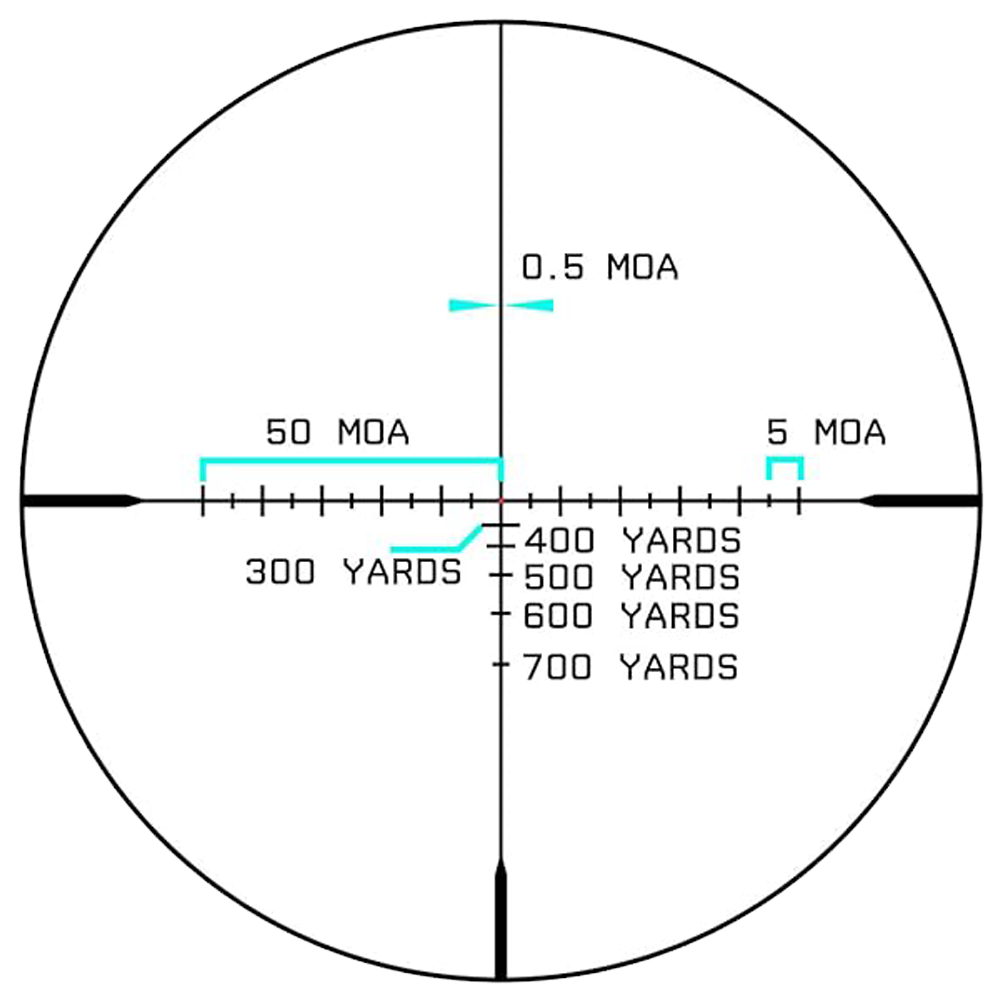 - Adjustment Increments: 1/2 MOA or 0.2 MIL