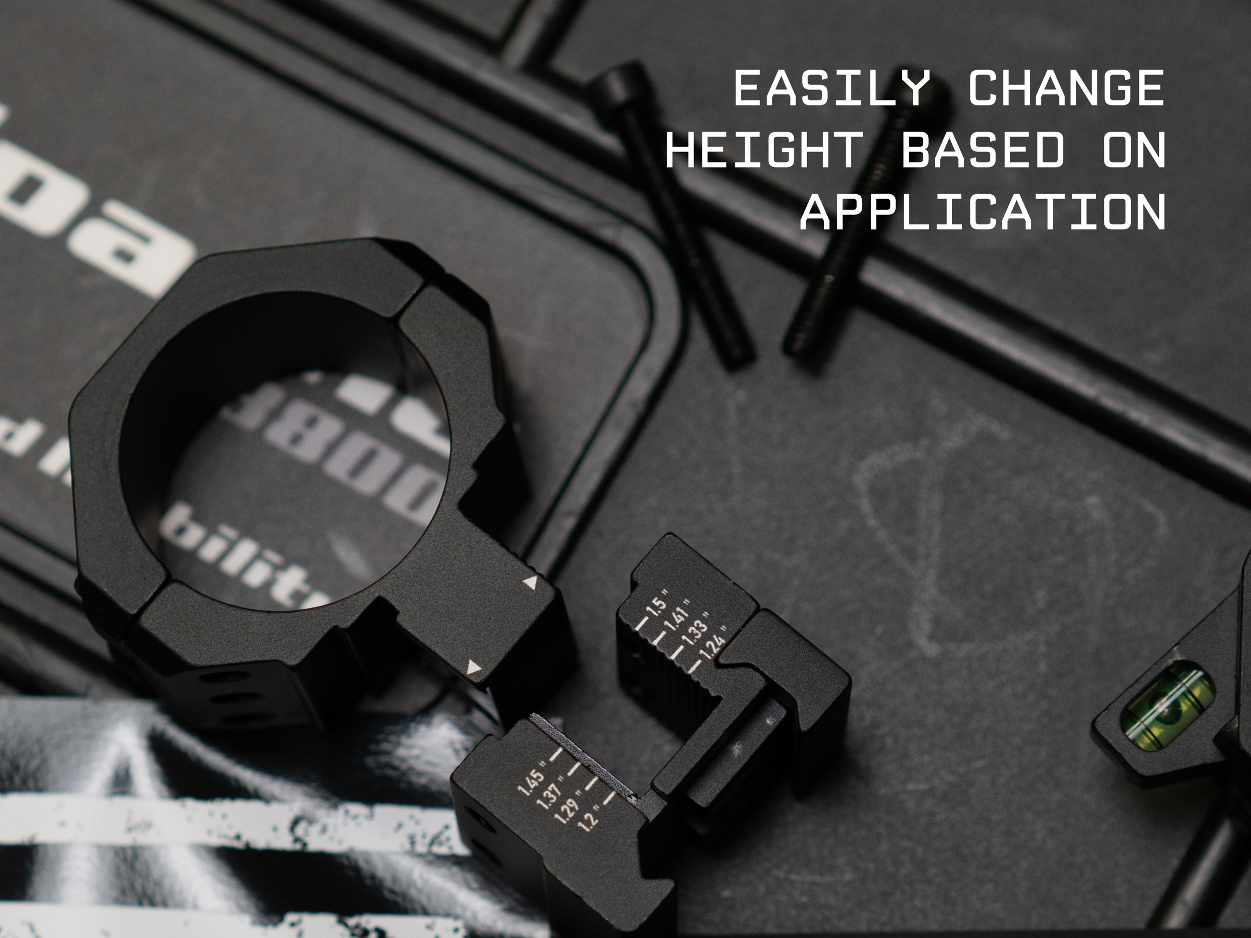 Rings height can be adjusted via precision machined interlocking teeth and plate mechanism from 1.20" up to 1.50" center height in increments of 0.04"
