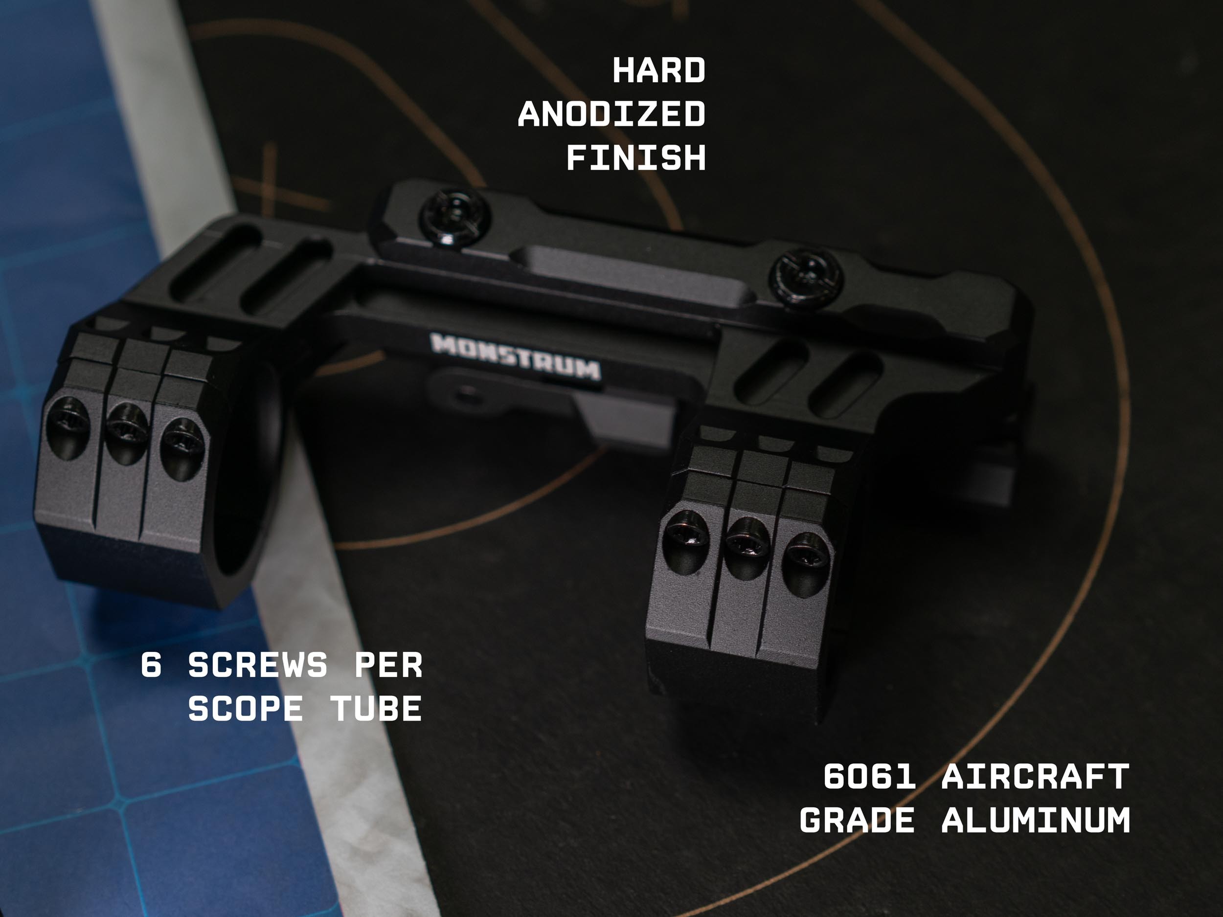 The next generation of Monstrum Scope Mounts is here with a brand new look! With a rigid unibody design with strategically placed lightening cuts to reduce weight - the Monstrum Deadlock Pro Series provides mounting of your scope at the absolute minimum amount of weight possible. With an added layer of protection over our standard Deadlock Series Scope Mounts, Deadlock Pros are put through a rigorous hardcoat anodization process - providing a more rugged, more scratch resistant outer layer surface.