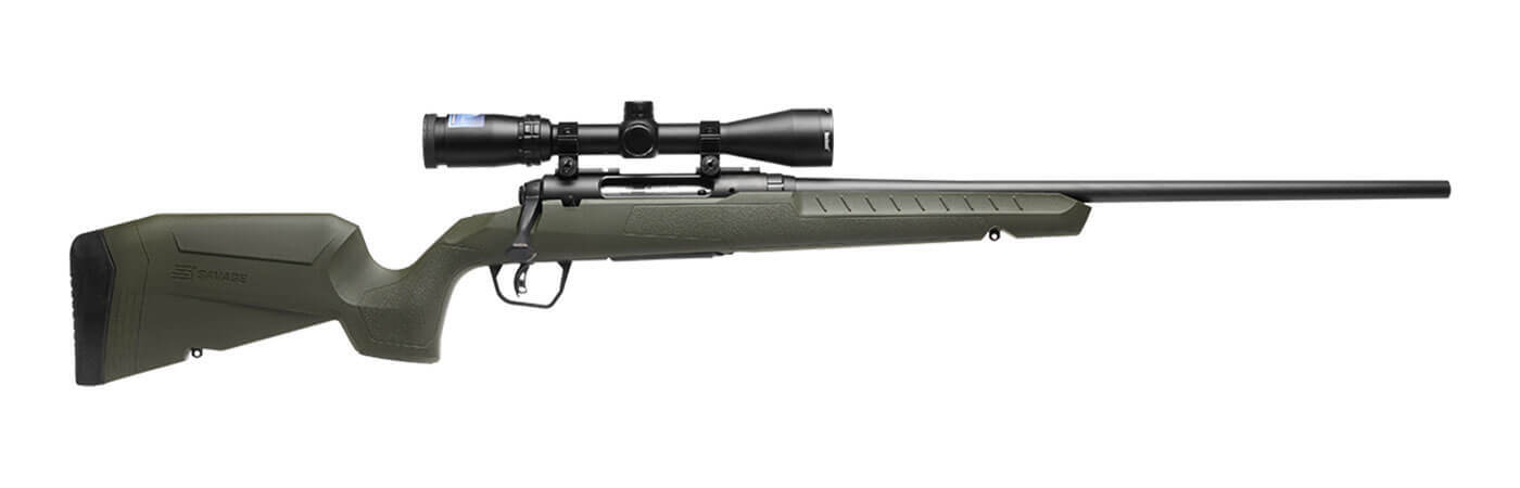 The original Savage Axis is still in production alongside its newer updated models. The original model ships with the first generation black synthetic stock which has a more traditional profile and without the AccuTrigger. The full size 22” barrel version is available in most centerfire rifle cartridges from .223 Remington up to .400 Legend and a smaller 20” barrel compact version is available in a more limited caliber assortment.