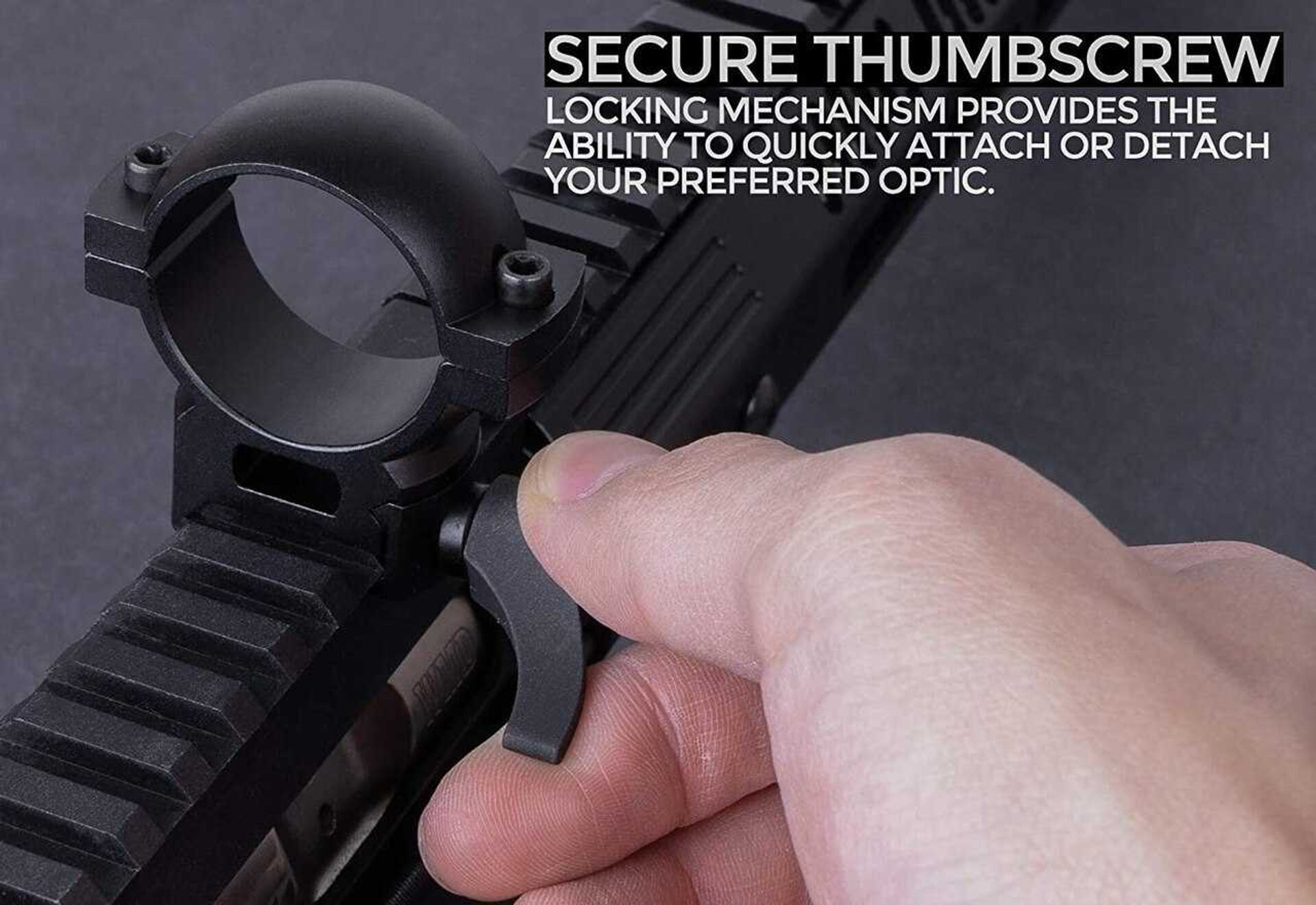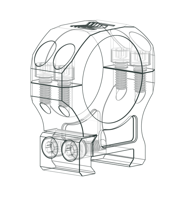 Screw mounted rings are the most traditional type. They are mounted via one or two screws which thread one end of the ring’s base in and out. Screw mounted rings can be very secure and should always be mounted with thread locker to ensure the screws won’t walk out, but they have the disadvantage of being slow to remove. Some are also impossible to swap out without needing a tool, though certain types of screw mounted scope rings come with oversized screw heads that make installing and removing easier.