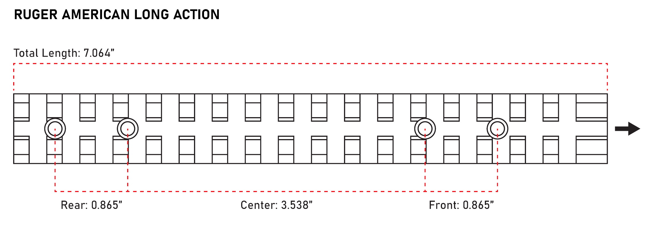 You can further verify whether your rifle is long action by measuring the distance between the screws on your receiver. If the distance between screws is 3.5 inches, then your rifle is a long action version and will compatible with this optic rail.